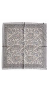 Trendy vierkante sjaal met een fijne paisley print in zachte beige- en grijstinten. De soepele, lichtglanzende stof geeft een luxe feel en maakt ‘m super easy te stylen.