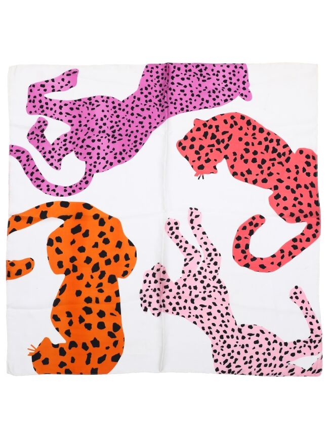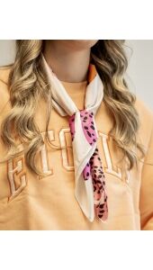 Dit statement sjaaltje met speelse leopard print geeft je outfit meteen een edgy en trendy touch. De mix van warme tinten en opvallende vormen maakt ’m een echte eyecatcher. Perfect om je look net wat extra power te geven.