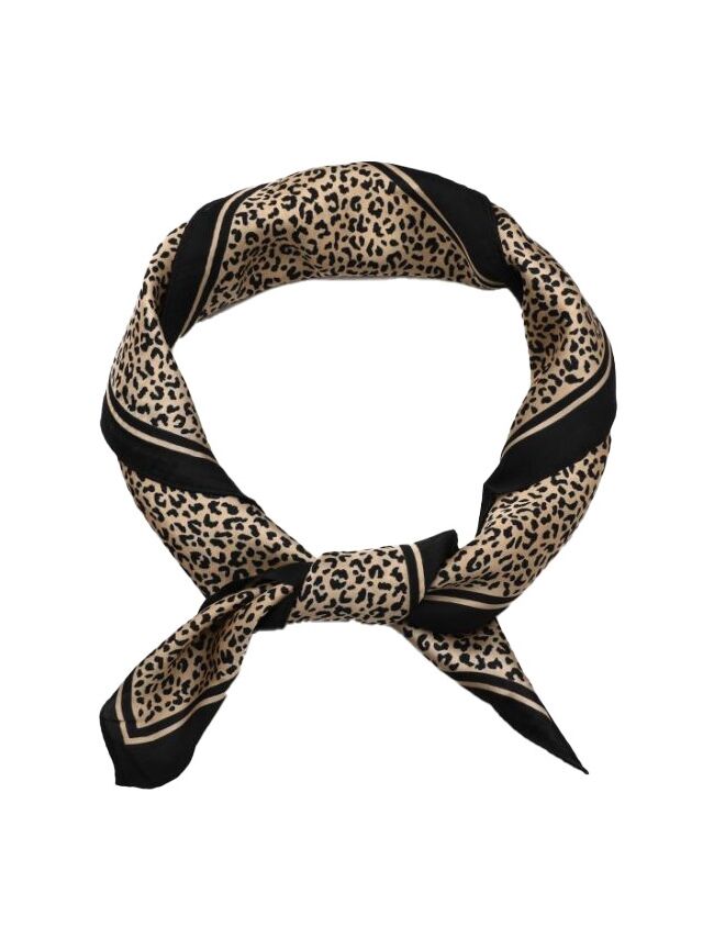 Deze sjaal met fijne luipaardprint en zwarte rand heeft een tijdloze uitstraling. Makkelijk te combineren en ideaal om je outfit net wat extra karakter te geven.