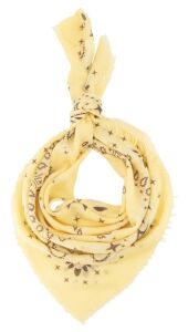 Deze gele sjaal met paisley-print geeft elke outfit een speelse en trendy touch. Het zachte materiaal en de subtiele rafelrandjes zorgen voor een nonchalante, stoere uitstraling. Draag ’m om je hals, in je haar of aan je tas voor een stijlvolle finishing touch met een vleugje flair.