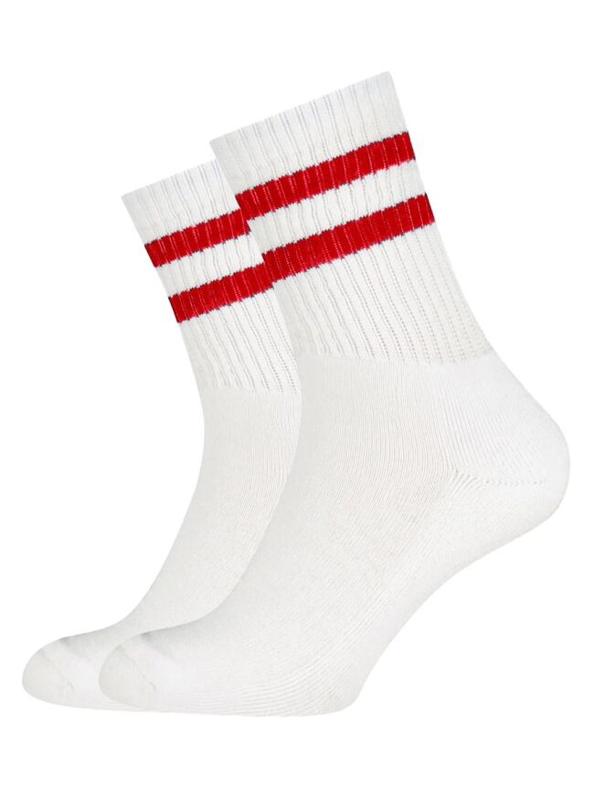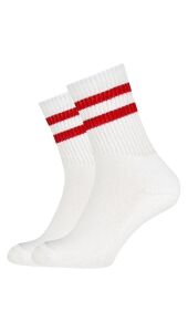 Deze witte sokken met twee strepen zijn gemaakt van een zachte katoenmix voor optimaal comfort. Ze bieden een sportieve look, perfect voor zowel casual als sportieve outfits. De verstevigde hiel en teen zorgen voor extra duurzaamheid, en de elastische boord voorkomt afzakken. Ideaal voor dagelijks gebruik.