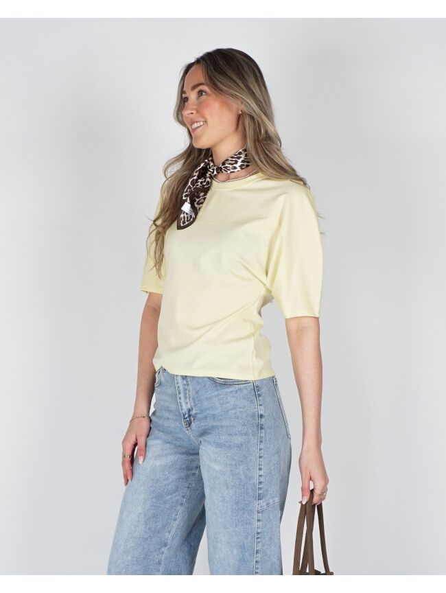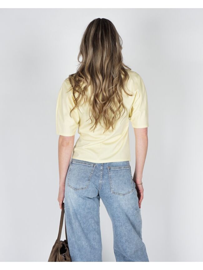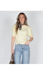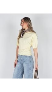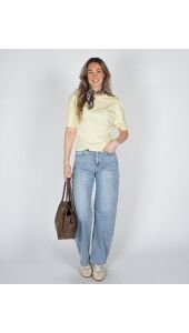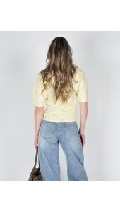 Dit getailleerde T-shirt in licht geel heeft een mooie, vrouwelijke pasvorm. De zachte stof zorgt voor een comfortabele feel en maakt het perfect voor elke dag. Makkelijk te combineren met een jeans, rok of pantalon voor een tijdloze look.