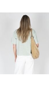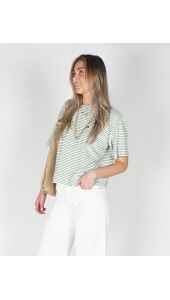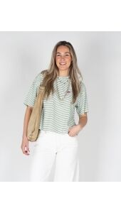 GESTREEPT BADSTOF T-SHIRT GROEN
