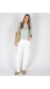 Dit badstof T-shirt is de perfecte mix van comfort en stijl. De zachte, luchtige stof voelt heerlijk aan en geeft je outfit een casual, frisse uitstraling. Ideaal om moeiteloos te combineren voor een relaxte maar trendy look.