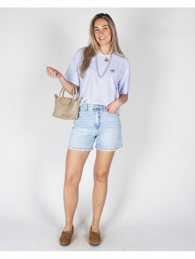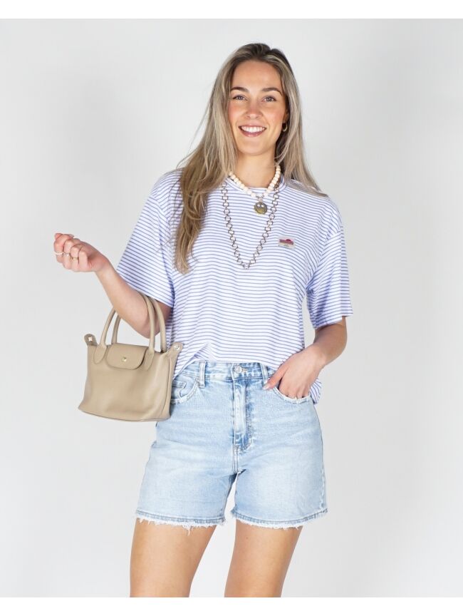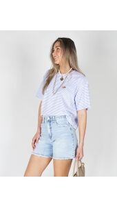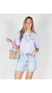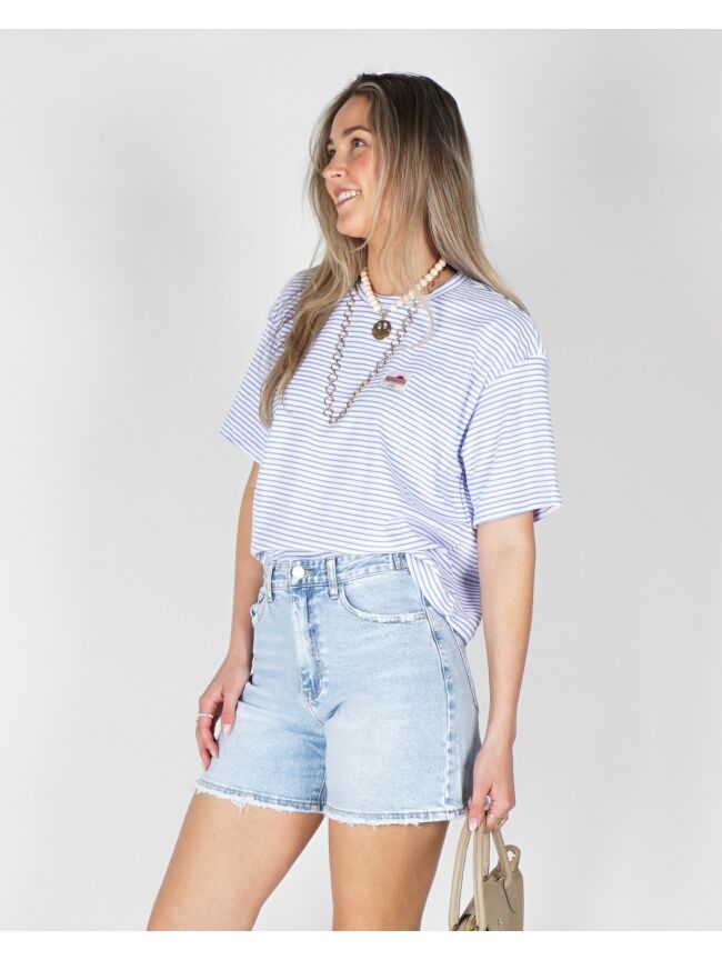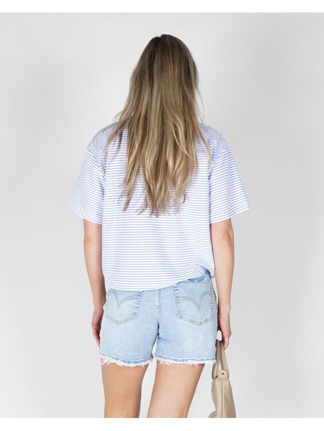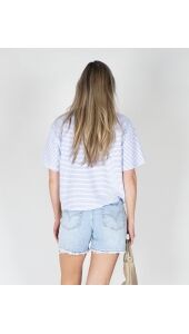 GESTREEPT BADSTOF T-SHIRT BLAUW