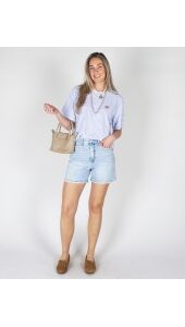 Dit badstof T-shirt is de perfecte mix van comfort en stijl. De zachte, luchtige stof voelt heerlijk aan en geeft je outfit een casual, frisse uitstraling. Ideaal om moeiteloos te combineren voor een relaxte maar trendy look.