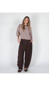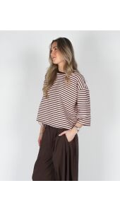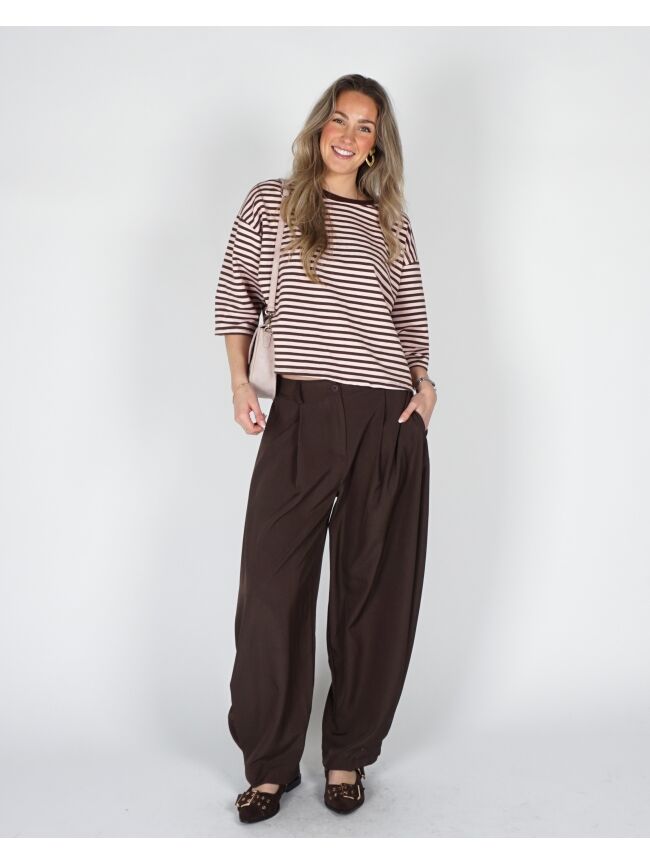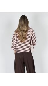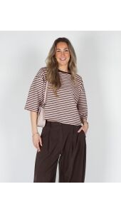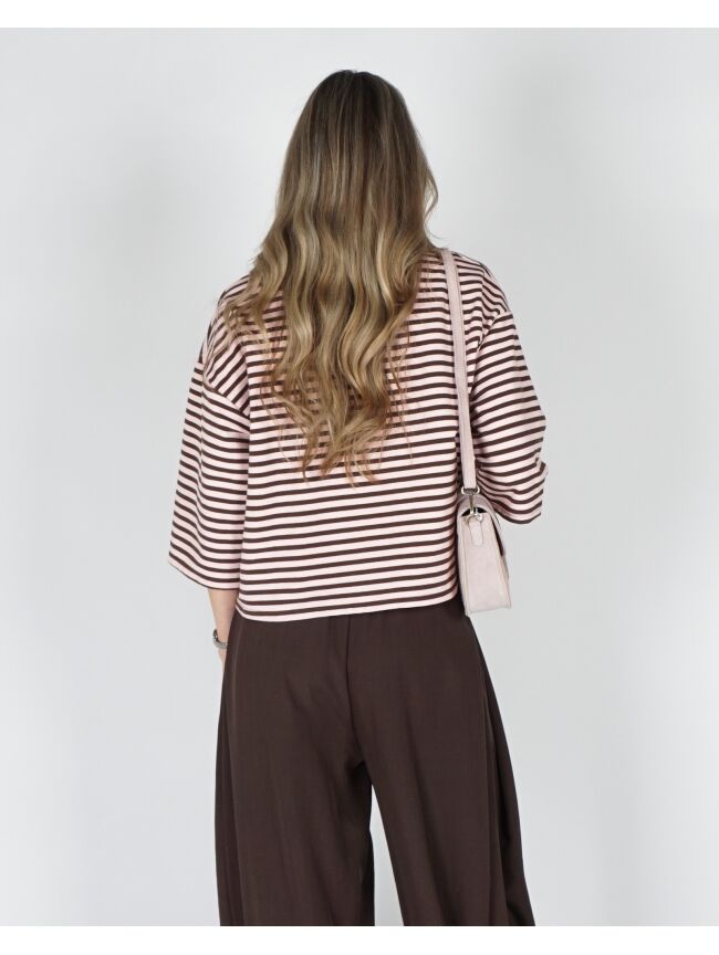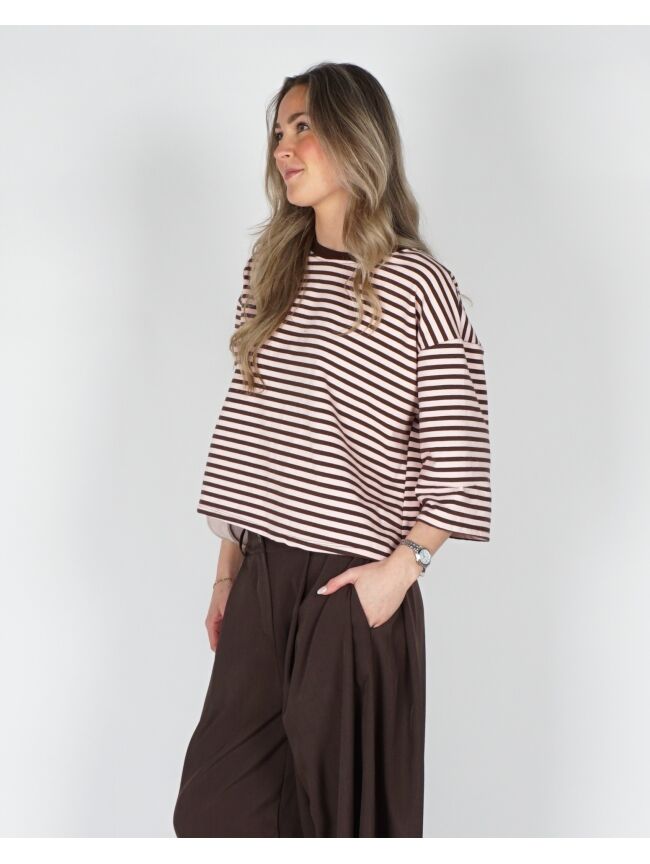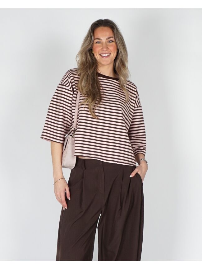 T-SHIRT MET STREPEN BRUIN ROZE