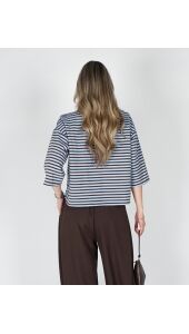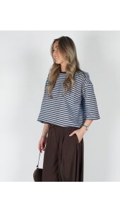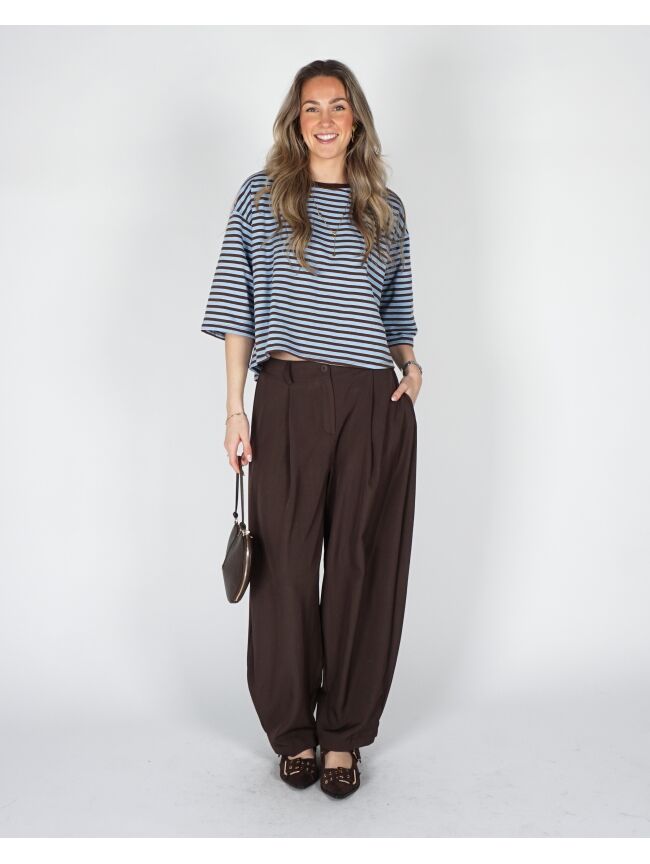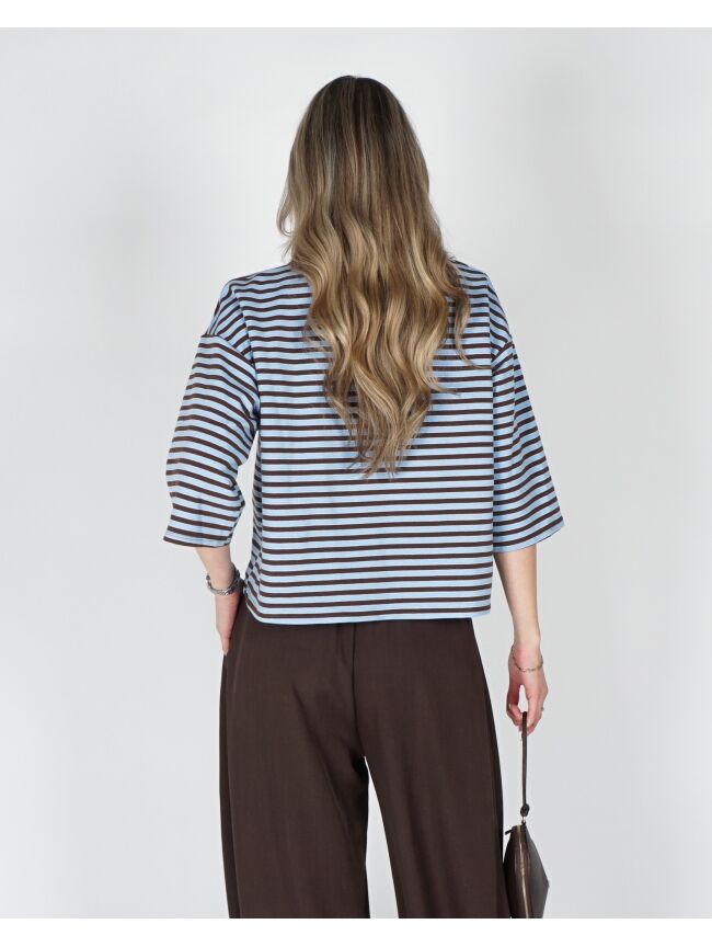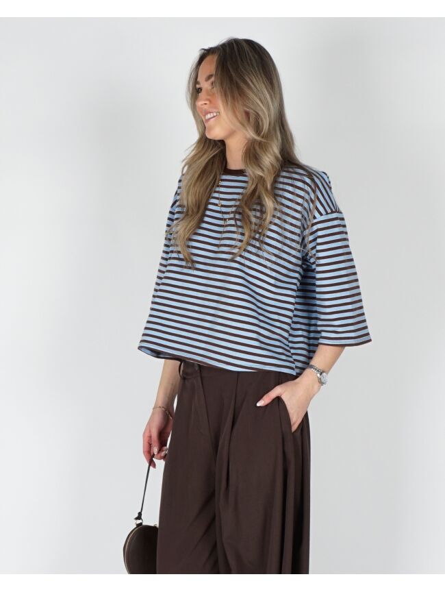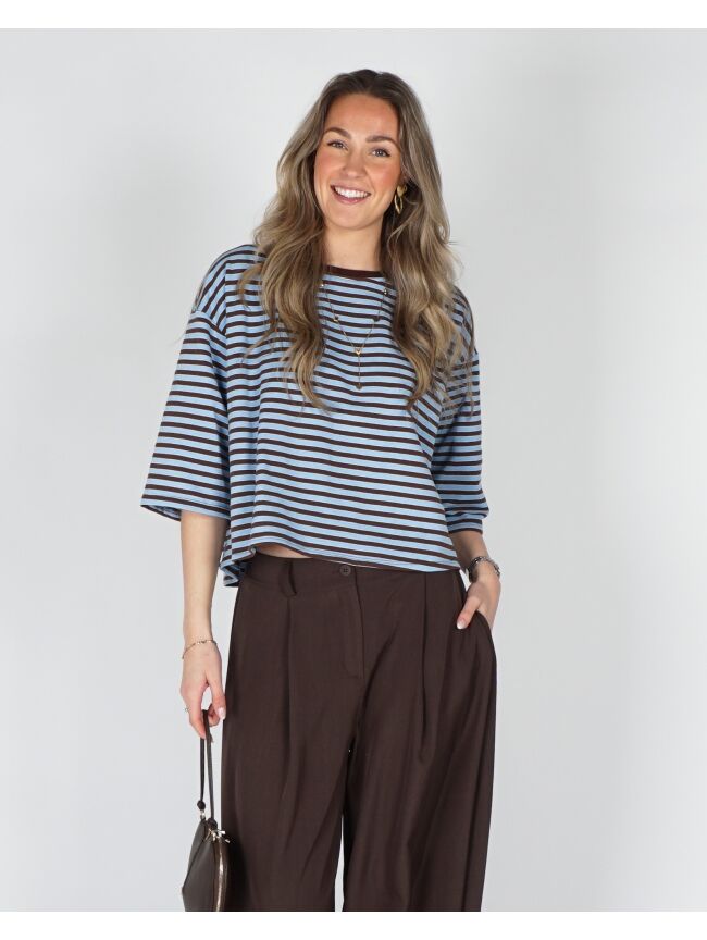 T-SHIRT MET STREPEN BRUIN BLAUW