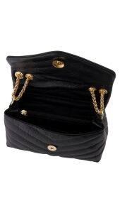 De crossbody tas heeft een voorflap met een magneetsluiting. De tas is voorzien van een hoofdvak en een steekvak met rits. De tas heeft een dubbele ketting hengsel met gouden finish en een leren band. De Celine crossbody tas kan zowel casual als party chic gedragen worden.