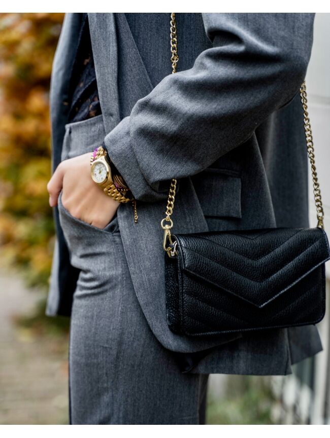 De Laurie tas is een leren crossbody tas met een lang kettinghengsel in een luxe design. Deze tas maakt je hele outfit compleet!
