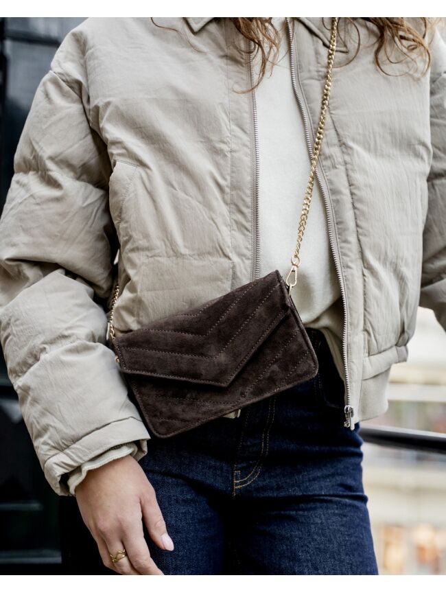 Wauwie dit is zo'n mooie tas! Tas Laurie is onze nieuwe everyday bag. Leren crossbody tas met een lang kettinghengsel in een luxe design van suede.