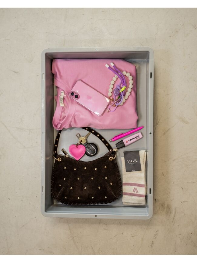 Casey is een handtas vervaardigd van suede leer. De tas heeft een groot vak met aan de binnenzijde een afsluitbaar steekvakje. De crossbody tas heeft een verstelbaar hengsel.