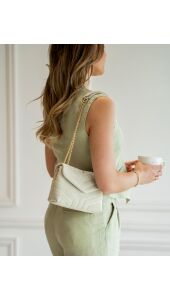 De crossbody tas heeft een voorflap met een magneetsluiting. De tas is voorzien van een hoofdvak en een steekvak met rits. De tas heeft een dubbele ketting hengsel met gouden finish en een leren band. De Celine crossbody tas kan zowel casual als party chic gedragen worden.