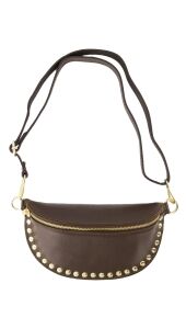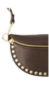Debby is een leren heuptas die ook als crossbody tas gedragen kan worden. De Debby heuptas heeft een binnenvak en een steekvak met een afneembaar en verstelbaar leren hengsel. De tas is afgewerkt met studs en goudkleurig hardware.