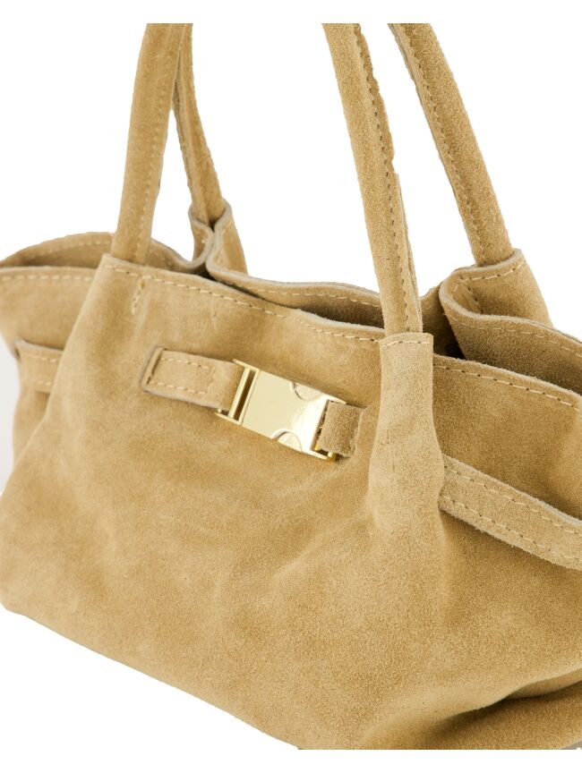 Leonie is een leren handtas vervaardigd uit suede leer. De handtas is ook te dragen als een crossbody tas. De Leonie tas heeft een afneembaar en verstelbaar hengsel.