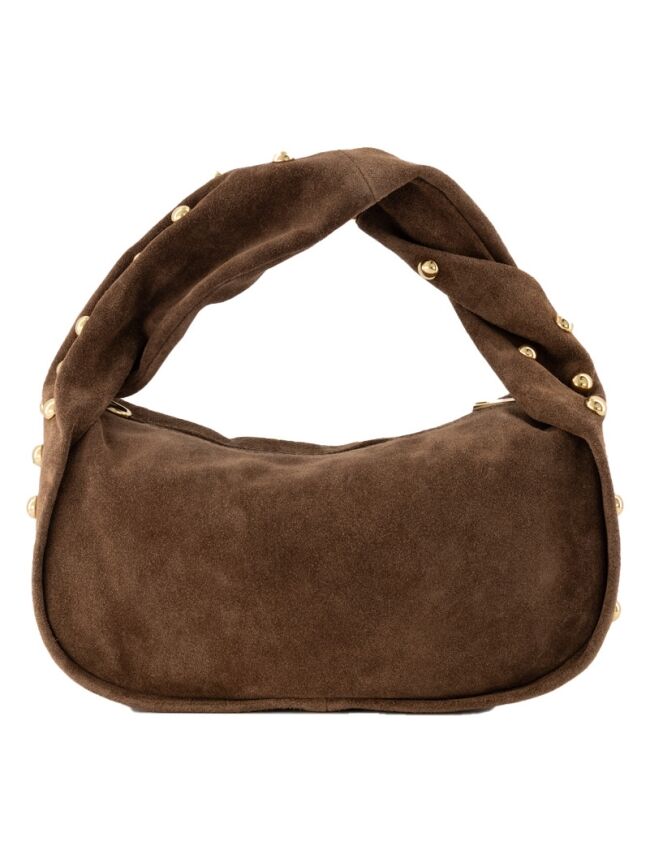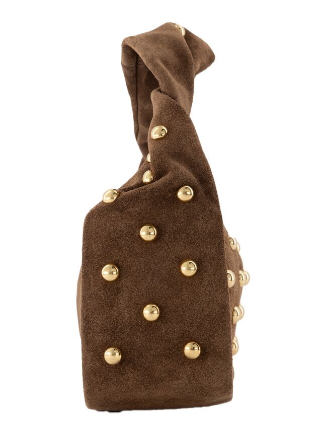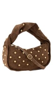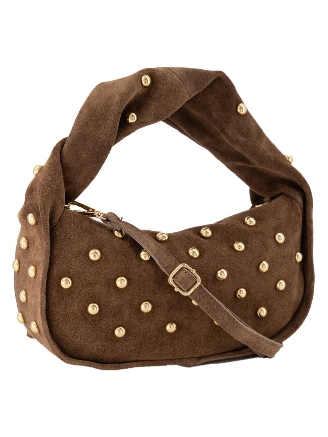 De Lottie handtas is vervaardigd van 100% suede leer afgewerkt met goudkleurige studs. Lottie is inclusief een afneembaar en verstelbaar hengsel, zodat de tas ook als crossbodytas gedragen kan worden. Deze must-have wil je niet missen!