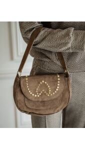 Winona is een suede leren schoudertas die ook gedragen kan worden als crossbody tas. De tas heeft een afneembaar en verstelbaar leren hengsel. De tas heeft een binnenvak met aan de binnenzijde een ritsvak. De Winoma schoudertas is voorzien van bronskleurige hardware.