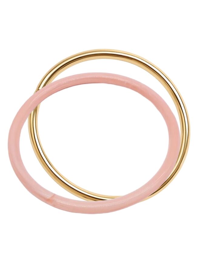 Trendy bangle set in het lichtroze met goud met een stijlvolle, moderne uitstraling. Lichtgewicht, elegant en perfect om elke outfit een frisse en chique touch te geven.