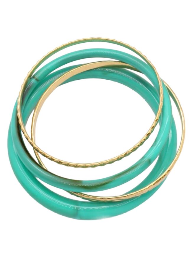 Trendy bangle set met turquoise en gouden bangles. Lichtgewicht, stijlvol en perfect om elke outfit een frisse en elegante touch te geven.
