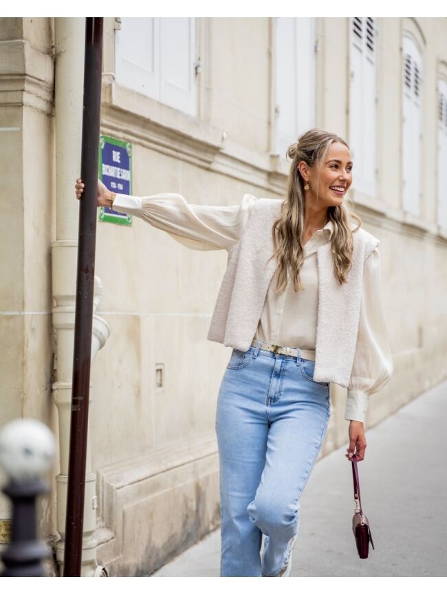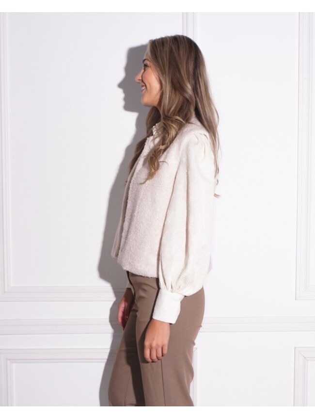 Dit zachte teddy giletje met een klein glinsterde er door heen is een must in jouw gardarobe, stijl hem met de hartjes blouse anais of een dunne trui en je bent ready to go!