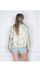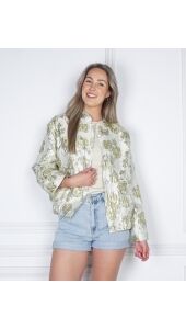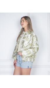 Deze jacquard bomber is de perfecte mix van stijl en comfort. De jas is gevoerd, afgewerkt met de mooiste knopen en heeft een subtiele structuur die de bomber een luxe uitstraling geeft. De groene bloemenprint zorgt voor een vrouwelijke en frisse twist!