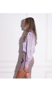 Voeg een vleugje glamour toe aan je outfit met de shiny blouse Louise. Gemaakt van een ribbelstofje dat zorgt voor een subtiele structuur. Het glittertje in de stof geeft net dat beetje extra sparkle, perfect voor zowel casual als feestelijke gelegenheden. De blouse heeft een losvallende pasvorm en kan makkelijk worden gestyled met zowel een jeans als een nette broek.