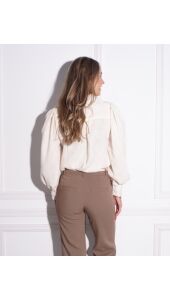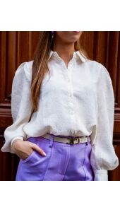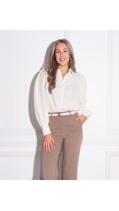 Deze prachtige blouse heeft een soepelvollende pasvorm en met een mooie structuur in het materiaal.Stijl de blouse met de pantalon Marie of met onze gossip denim.