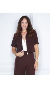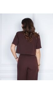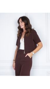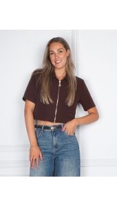 Maak kennis met jouw nieuwe go-to top: een donkerbruine short sleeve met een edgy twist. De fijne gladde stof en de stoere ritssluiting geven dit basic item een high-fashion upgrade. Perfect om zowel casual als dressed-up te stylen met onze matching essential pantalon.