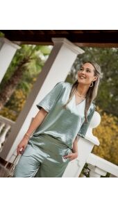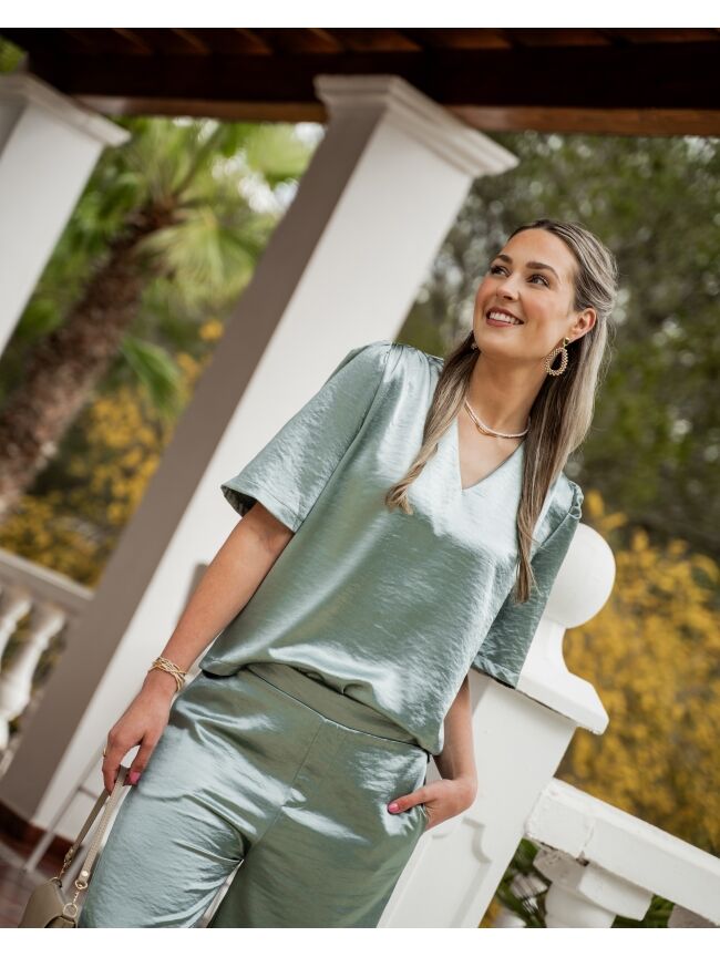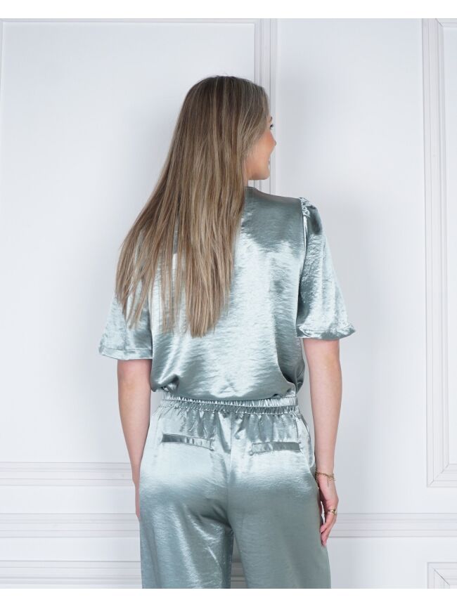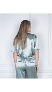 Deze satijnen Blouse is een absolute must-have voor wie houdt van een stijlvolle en luxe uitstraling. Gemaakt van een stevige satijnenlook stof. Deze blouse met korte mouwen is beschikbaar in maten S/M & L/XL en combineert de elegantie van satijn met het comfort van een viscose-mix. Perfect voor wedding season! Combineer met de matching Broek Lucia voor de totale set.