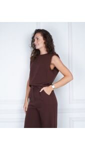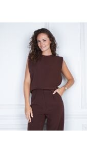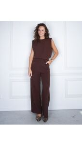 Elegance is always in style, especially in a set! Onze nieuwe essential sets zijn de musthave voor in jouw kast. De top is mouwloos en heeft een mooie schoudervulling voor de perfecte fit. Combineer met een de matching pantalon voor de totale look! Style af met accessoires en een hak voor een chique look. Verkrijgbaar in taupe, bruin en ecru.