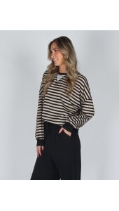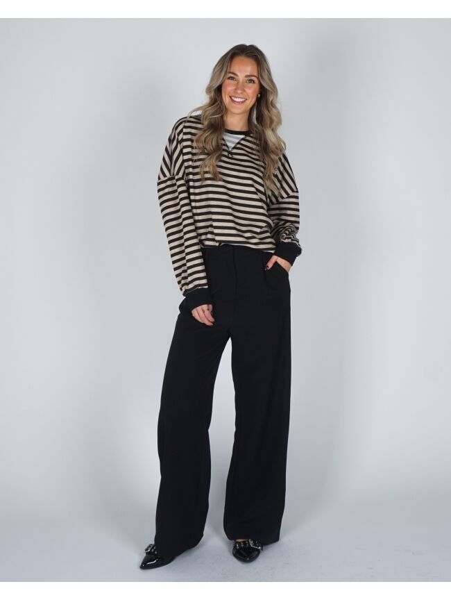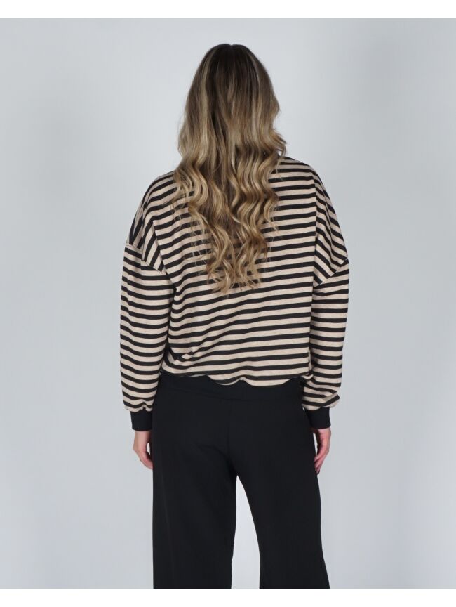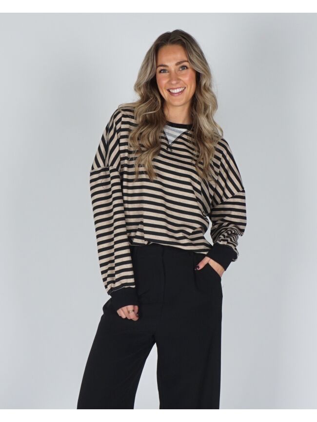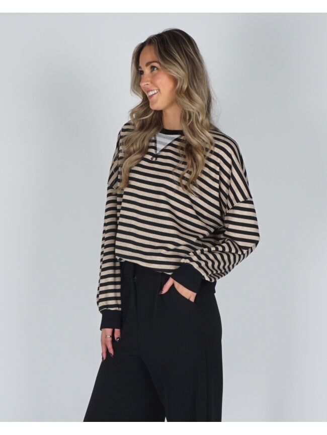 GESTREEPTE SWEATER LUNE ZWART/BEIGE