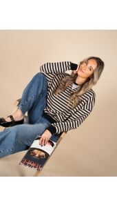 Hoe leuk is deze gestreepte sweater in het zwart/beige? De tijdloze streep en de perfecte pasvorm maken ‘m een echte favoriet voor elke dag. Combineer ‘m met een jeans, rok of over een jurk voor een moeiteloos leuke look.