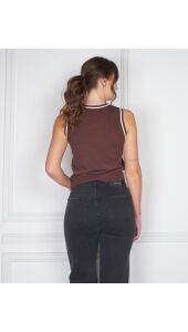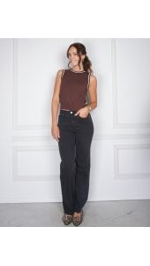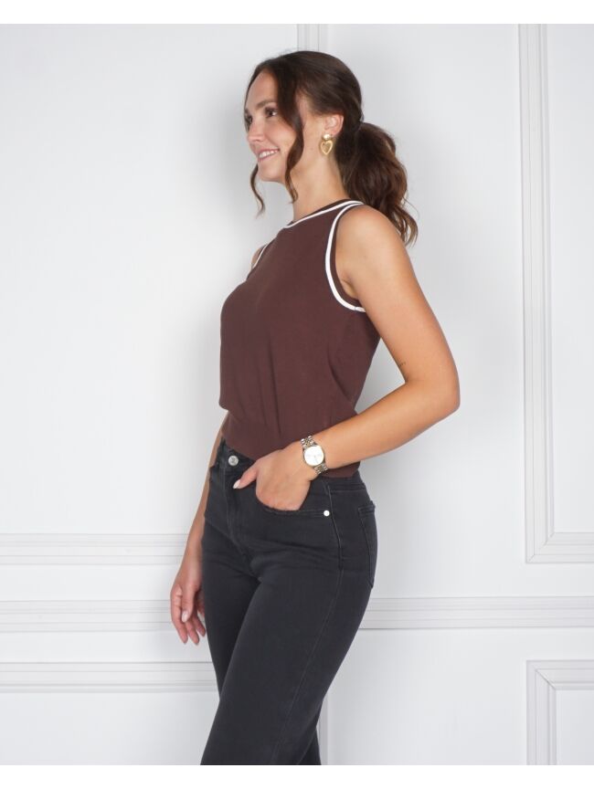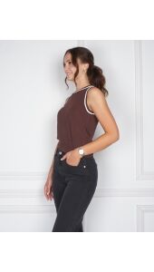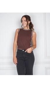 Hoe leuk is deze mouwloze top! Met als extra detail een witte bies. Een basis top die je eindeloos kunt combineren. Met je favoriete jeans en sieraden of op een mooie pantalon en hakje. We love it!