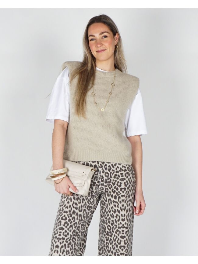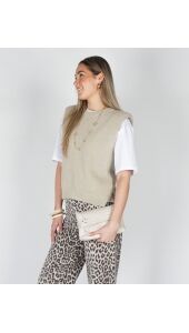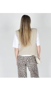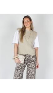 Deze stijlvolle gebreide spencer top is een echte musthave voor jouw garderobe! De zachte knit en de beige tint geeft de top een frisse, vrouwelijke uitstraling. Dankzij de mouwloze pasvorm is hij perfect om los te dragen op een jeans of pantalon, maar ook ideaal om te layeren. De spencer valt soepel en heeft een comfortabele fit, waardoor je ‘m zowel casual als chic kunt stylen. Combineer hem bijvoorbeeld met een basic blouse of een wit shirt voor een trendy look.