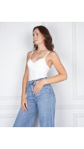 Een nieuwe variant van onze bestseller top! Deze BH top heeft voorgevormde cups met ondersteuning. Hij zit strak passend om het lichaam en draagt heerlijk door de hoge kwaliteit van de gebruikte stoffen en materialen. De bandjes zijn verstelbaar. Deze top staat er om bekend tijdloos en elegant te zijn. Een echte musthave!