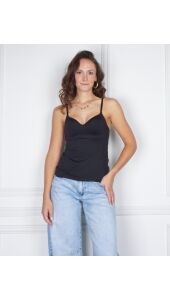 Een nieuwe variant van onze bestseller top! Deze BH top heeft voorgevormde cups met ondersteuning. Hij zit strak passend om het lichaam en draagt heerlijk door de hoge kwaliteit van de gebruikte stoffen en materialen. De bandjes zijn verstelbaar. Deze top staat er om bekend tijdloos en elegant te zijn. Een echte musthave!