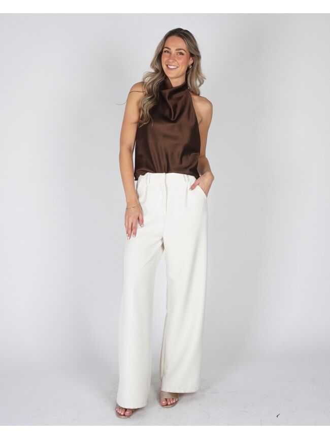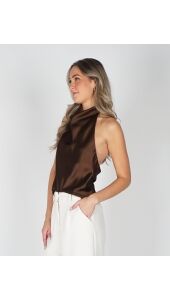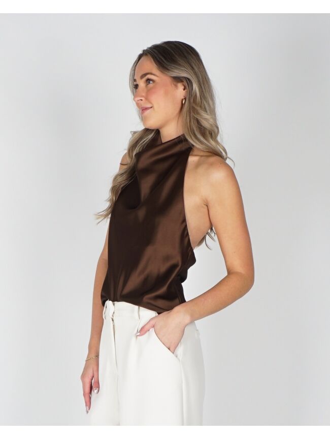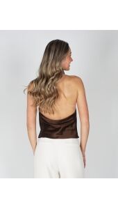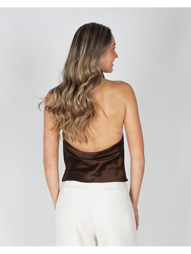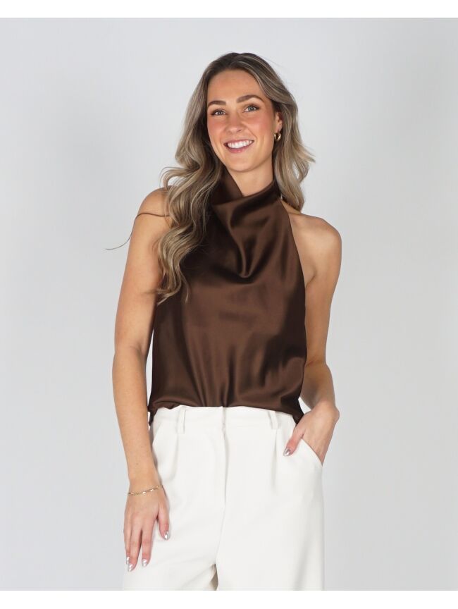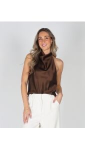 SATIJNEN HALTER TOP BRUIN