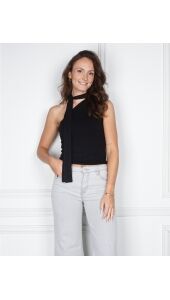 Deze zwarte top met bijpassend sjaaltje is een moderne essential met een twist. Het cleane silhouet krijgt extra karakter dankzij het sjaaltje. Perfect voor een festival of een feestje. Perfect te combineren met zowel denim als pantalon. Tijdloos, maar nooit saai.
