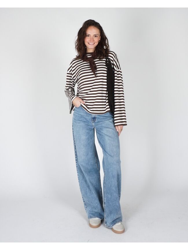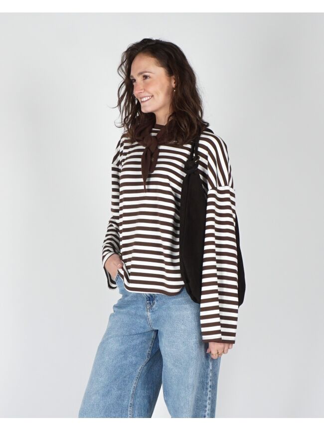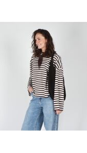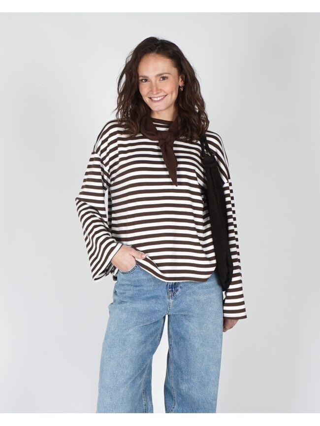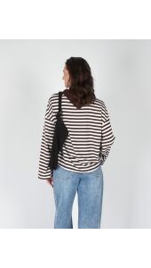 LONGSLEEVE GESTREEP BRUIN WIT