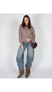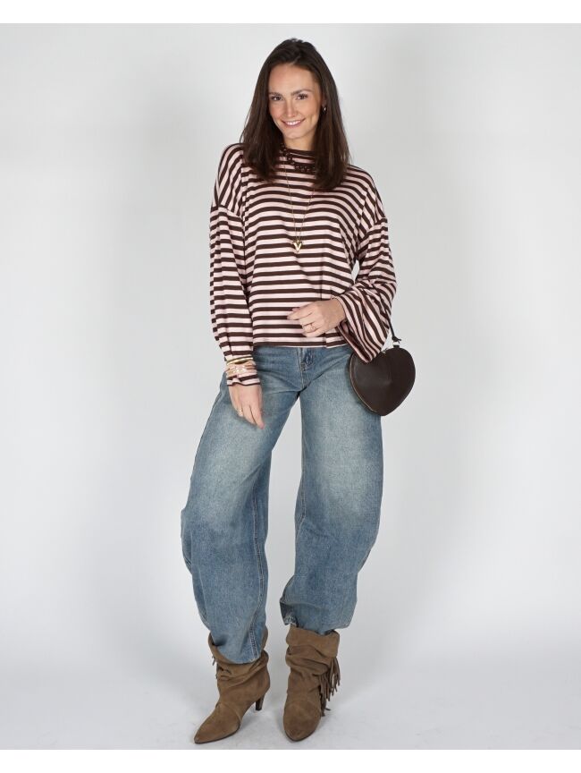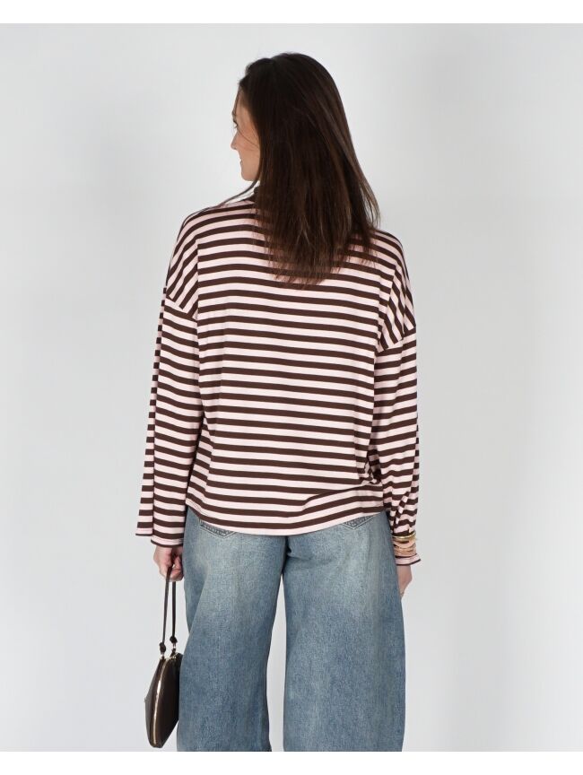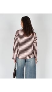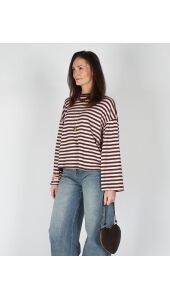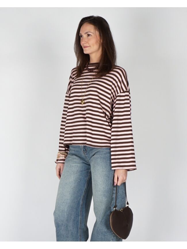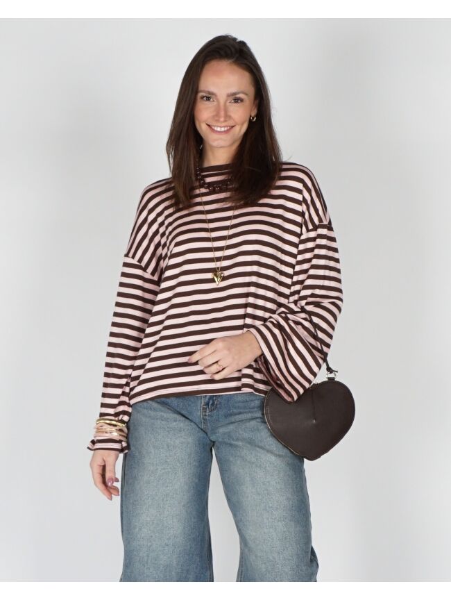 LONGSLEEVE GESTREEPT BRUIN/ROZE