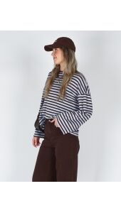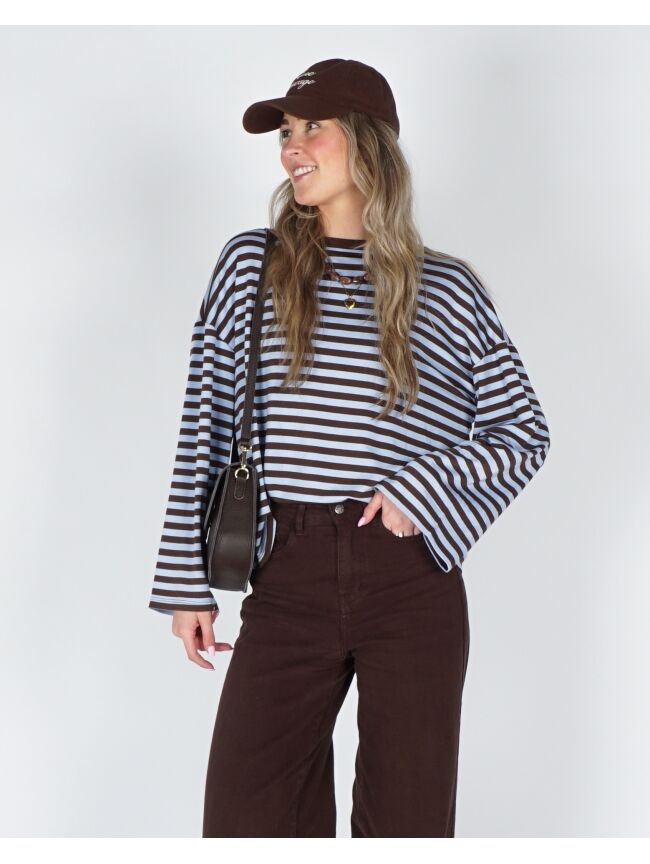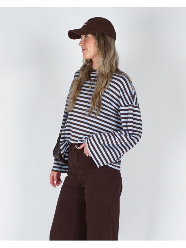 LONGSLEEVE GESTREEPT BRUIN/BLAUW
