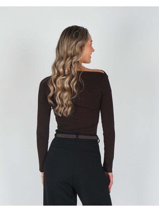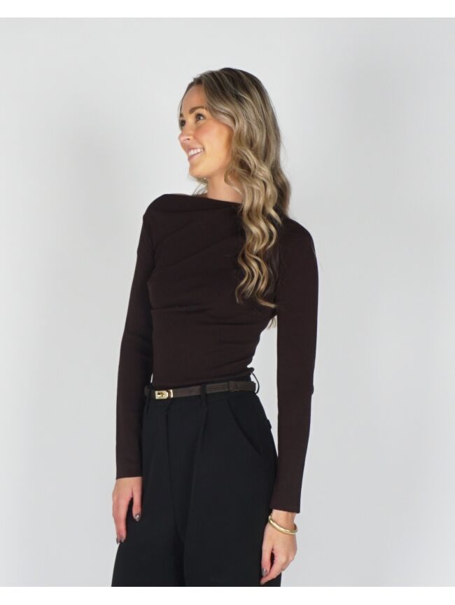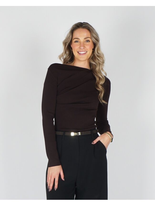 De Top Chelsea is een vrouwelijke en stijlvolle musthave. De schuine schouder geeft een speelse, elegante uitstraling, terwijl de strakke pasvorm je figuur mooi laat uitkomen. De rijke bordeauxkleur maakt deze top perfect voor zowel overdag als ’s avonds.