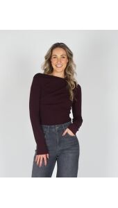 De Top Chelsea is een vrouwelijke en stijlvolle musthave. De schuine schouder geeft een speelse, elegante uitstraling, terwijl de strakke pasvorm je figuur mooi laat uitkomen. De rijke bordeauxkleur maakt deze top perfect voor zowel overdag als ’s avonds.