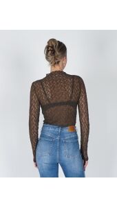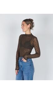 De Lace Top in bruin straalt pure elegantie uit dankzij de verfijnde kanten details en de vrouwelijke pasvorm. De warme bruintint geeft je outfit een chique, tijdloze look die zowel overdag als ’s avonds perfect is. Draag deze kanten top met een jeans voor een casual-romantische stijl of combineer met een rok voor een elegante, geklede outfit.