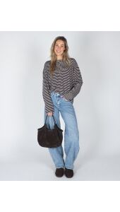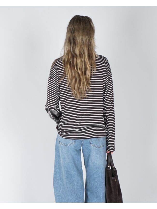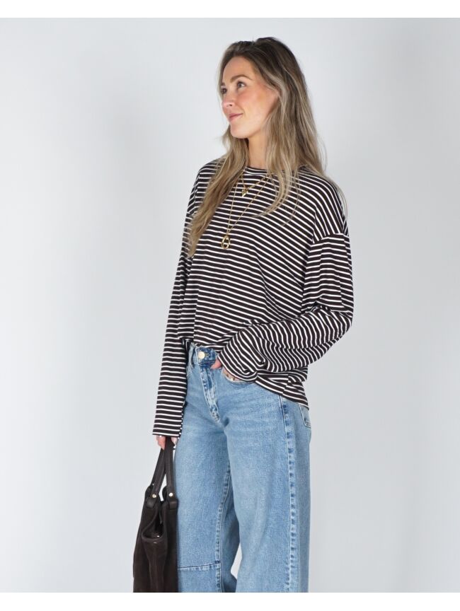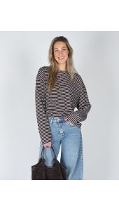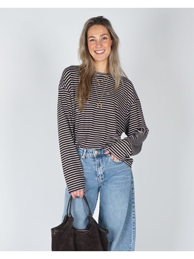 LONGSLEEVE MET DUNNE STREEP BRUIN/WIT