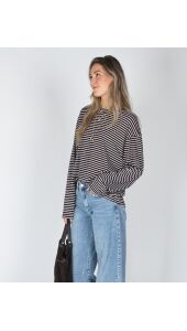 Deze stijlvolle longsleeve met fijne bruin-witte strepen is een echte essential voor je garderobe. De top heeft een oversized fit met een relaxte uitstraling en valt soepel om het lichaam. Dankzij de dunne strepen krijgt de longsleeve een tijdloze, maar toch moderne look. We love it!