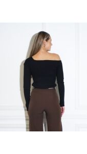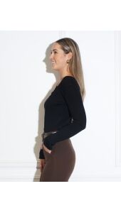 A basic with a twist. Deze te leuke stretchy top heeft een asymmetrische halslijn en knoopjes. De top heeft lange mouwen en is gemaakt van zacht materiaal. Style op je favoriete jeans of pantalon en je bent ready to go.
