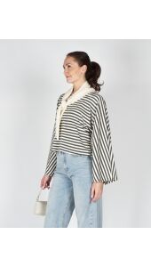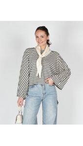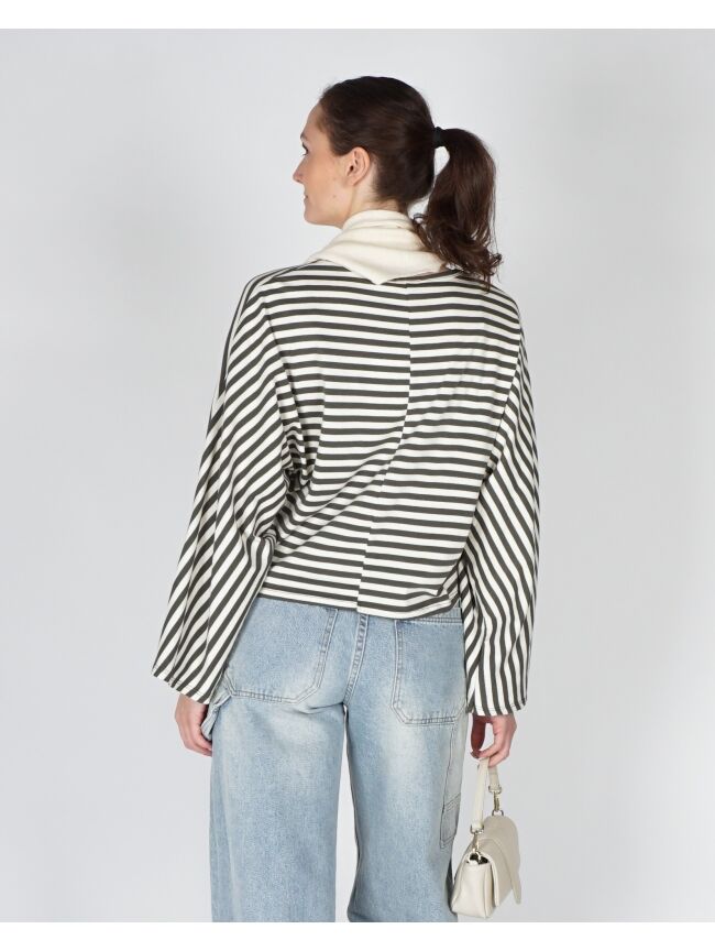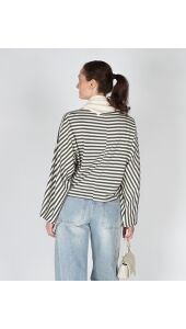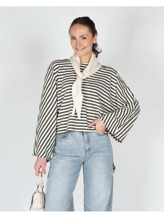 GESTREEPTE LONGSLEEVE BATWING ECRU GROEN