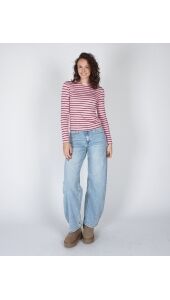 2 colours that go perfectly together: bordeaux en roze! Deze toffe long sleeve heeft een gaaf streep patroon en is perfect te stylen op een wide leg bruine jeans. Combineer met matching accessoires en je bent ready for the day.