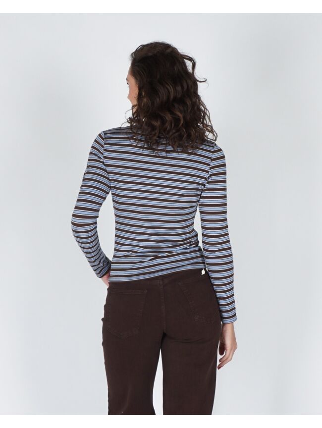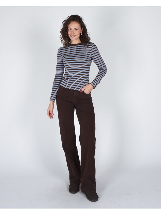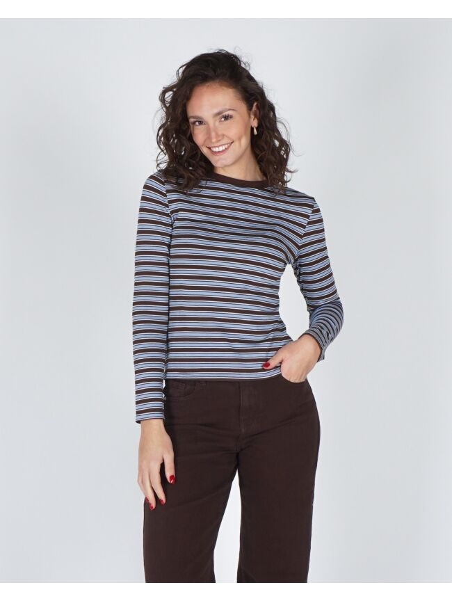GESTREEPTE LONGSLEEVE BRUIN / LICHTBLAUW